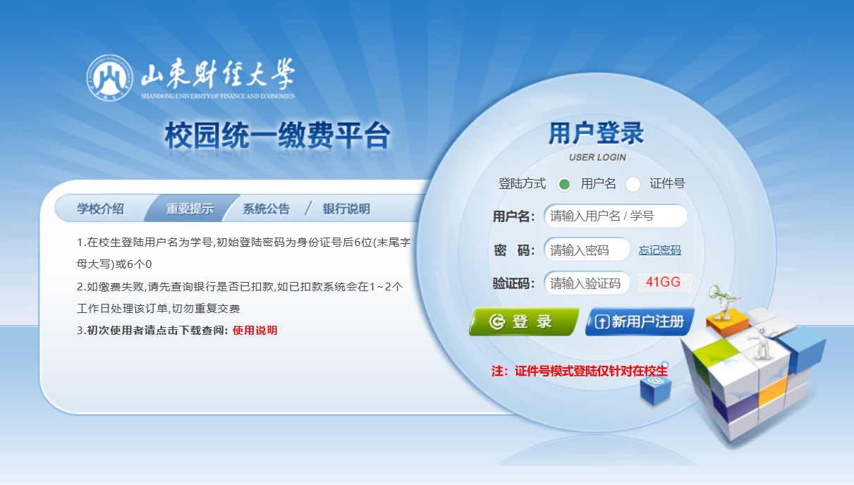 為了保證新學(xué)年選課、注冊(cè)順利進(jìn)行,根據(jù)魯價(jià)費(fèi)函〔2015〕50號(hào)、魯價(jià)費(fèi)函〔2018〕74號(hào)、魯教財(cái)函〔2019〕19號(hào)和學(xué)校政財(cái)〔2019〕5號(hào)等文件要求,結(jié)合學(xué)校相關(guān)工作計(jì)劃,現(xiàn)將有關(guān)學(xué)費(fèi)繳費(fèi)具體事項(xiàng)通知如下,請(qǐng)各位同學(xué)及時(shí)辦理。