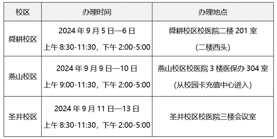 備注:每學期集中收取報銷材料之后發生的住院與意外傷害材料,每月最后一周的周四、周五由醫保辦的老師統一去各個校區(地點同上)收取。
