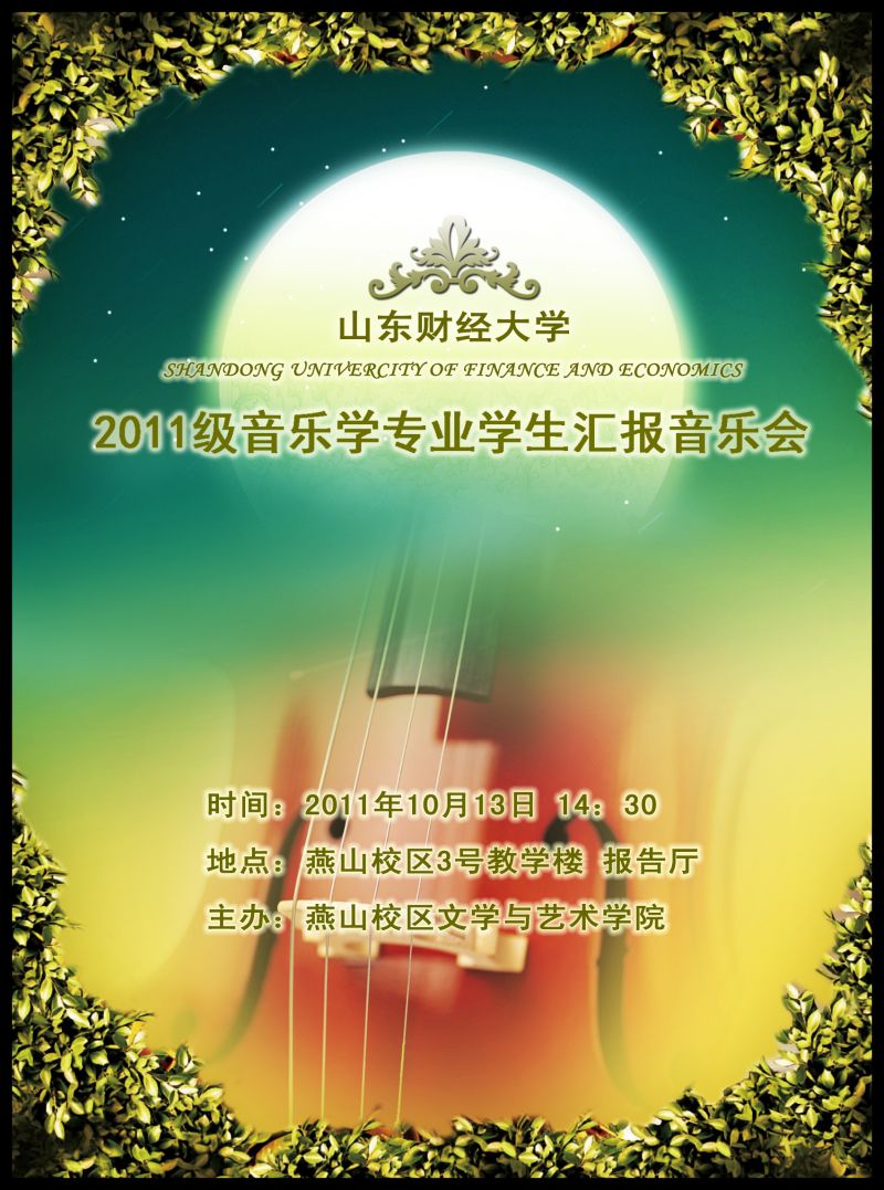 為活躍我校學生的文化藝術生活,展現音樂學新生的專業素養,提高我校音樂學專業的教學水平,我院將舉辦“2011級音樂學專業學生匯報音樂會”,歡迎領導老師前來觀摩指導。