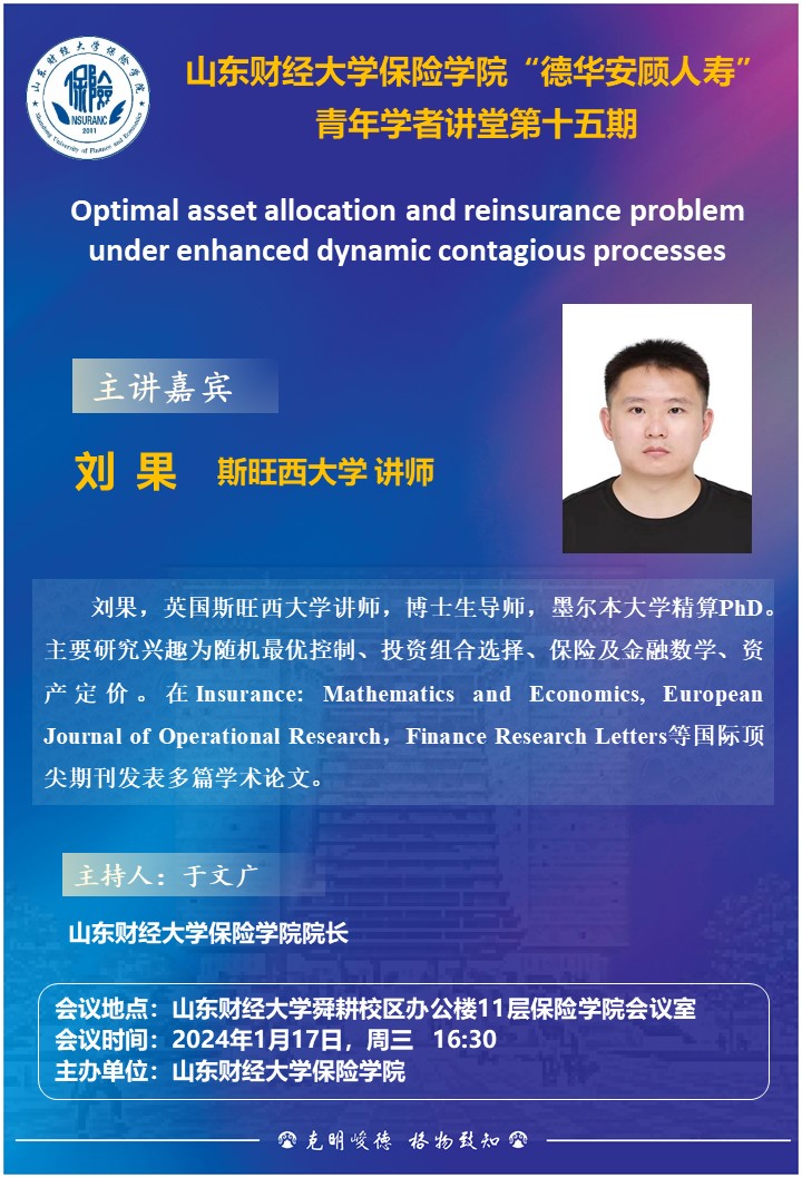 “德華安顧人壽”青年學者講堂第十五期:Optimal asset allocation and reinsurance problem under enhanced dynamic contagious processes