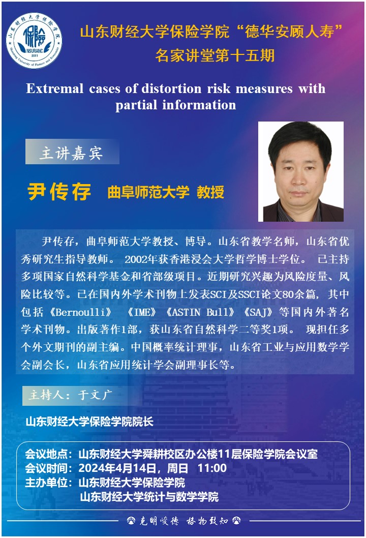 保險(xiǎn)學(xué)院“德華安顧人壽”名家講堂第十五期:Extremal cases of distortion risk measures with partial information