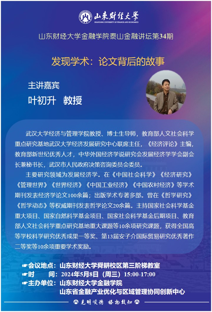 金融學(xué)院泰山金融講壇第34期 發(fā)現(xiàn)學(xué)術(shù):論文背后的故事