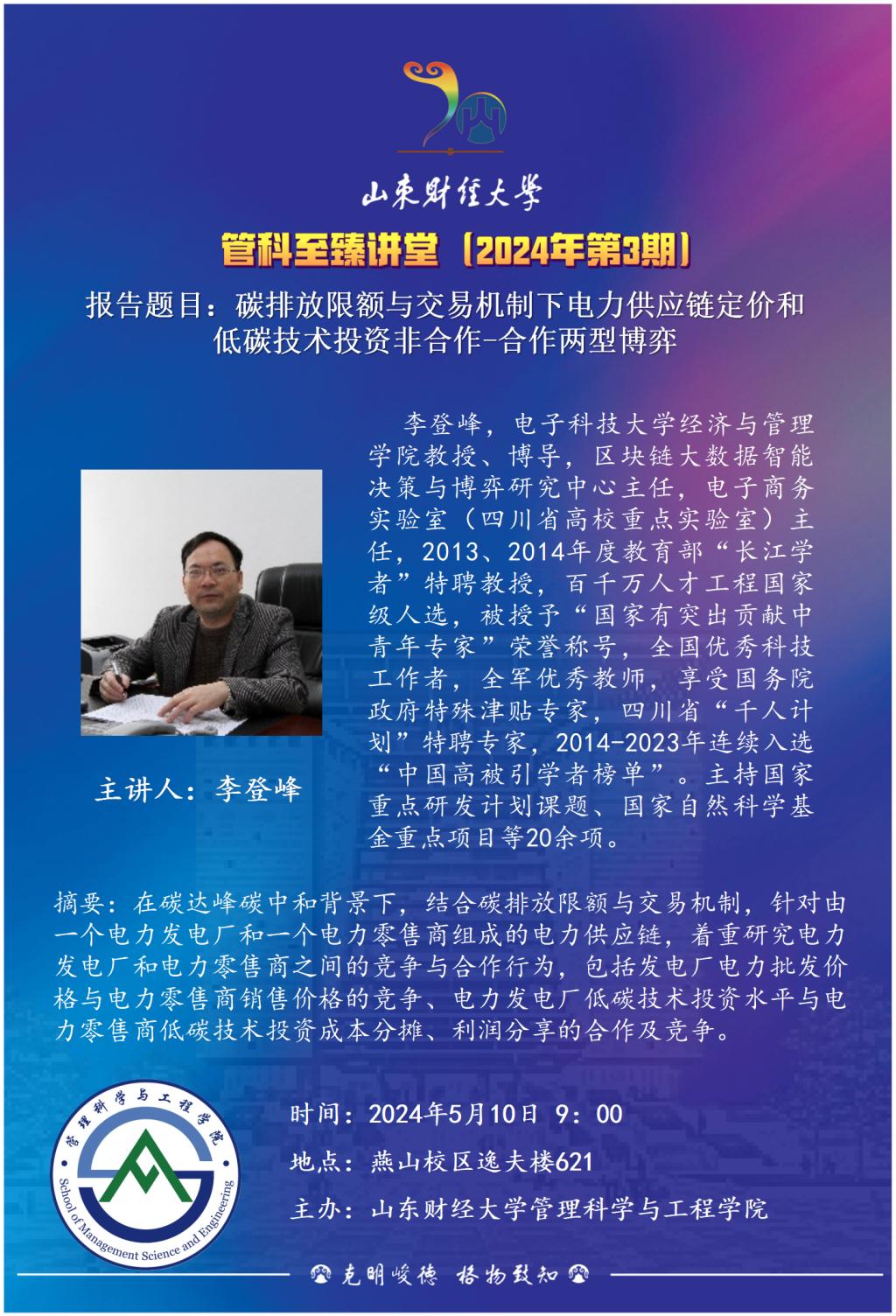 管科至臻講堂:碳排放限額與交易機制下電力供應鏈定價和低碳技術投資非合作-合作兩型博弈
