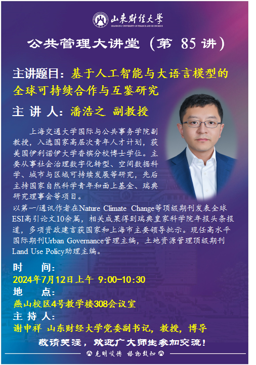 公共管理大講堂(第85講):基于人工智能與大語言模型的全球可持續合作與互鑒研究