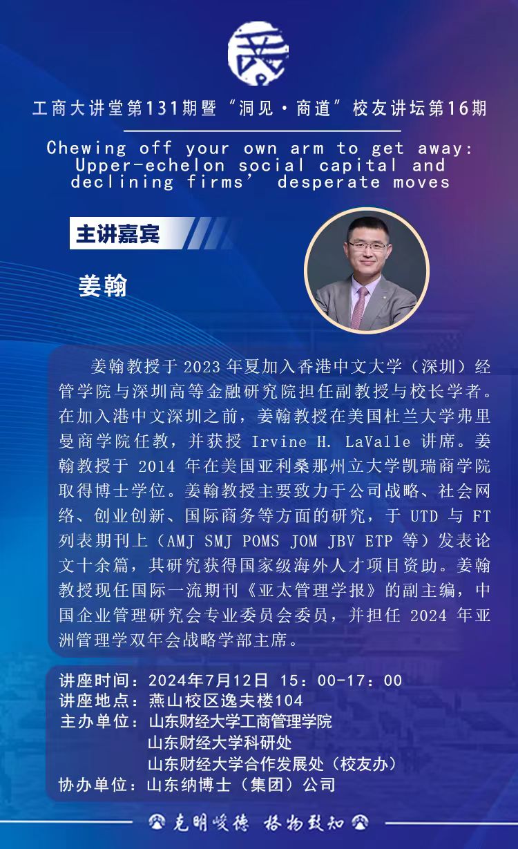 工商大講堂(第131期):Chewing off your own arm to get away: Upper-echelon social capital and declining firms’ desperate moves
