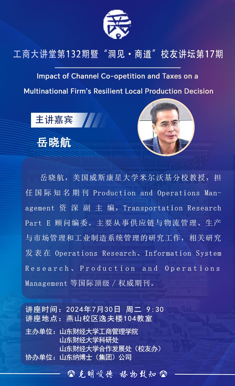 工商大講堂(第132期)——Impact of Channel Co-opetition and Taxes on a Multinational Firm’s Resilient Local Production Decision