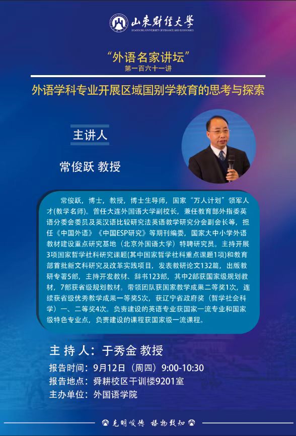 “外語名家講壇”第一百六十一講:外語學科專業開展區域國別學教育的思考與探索