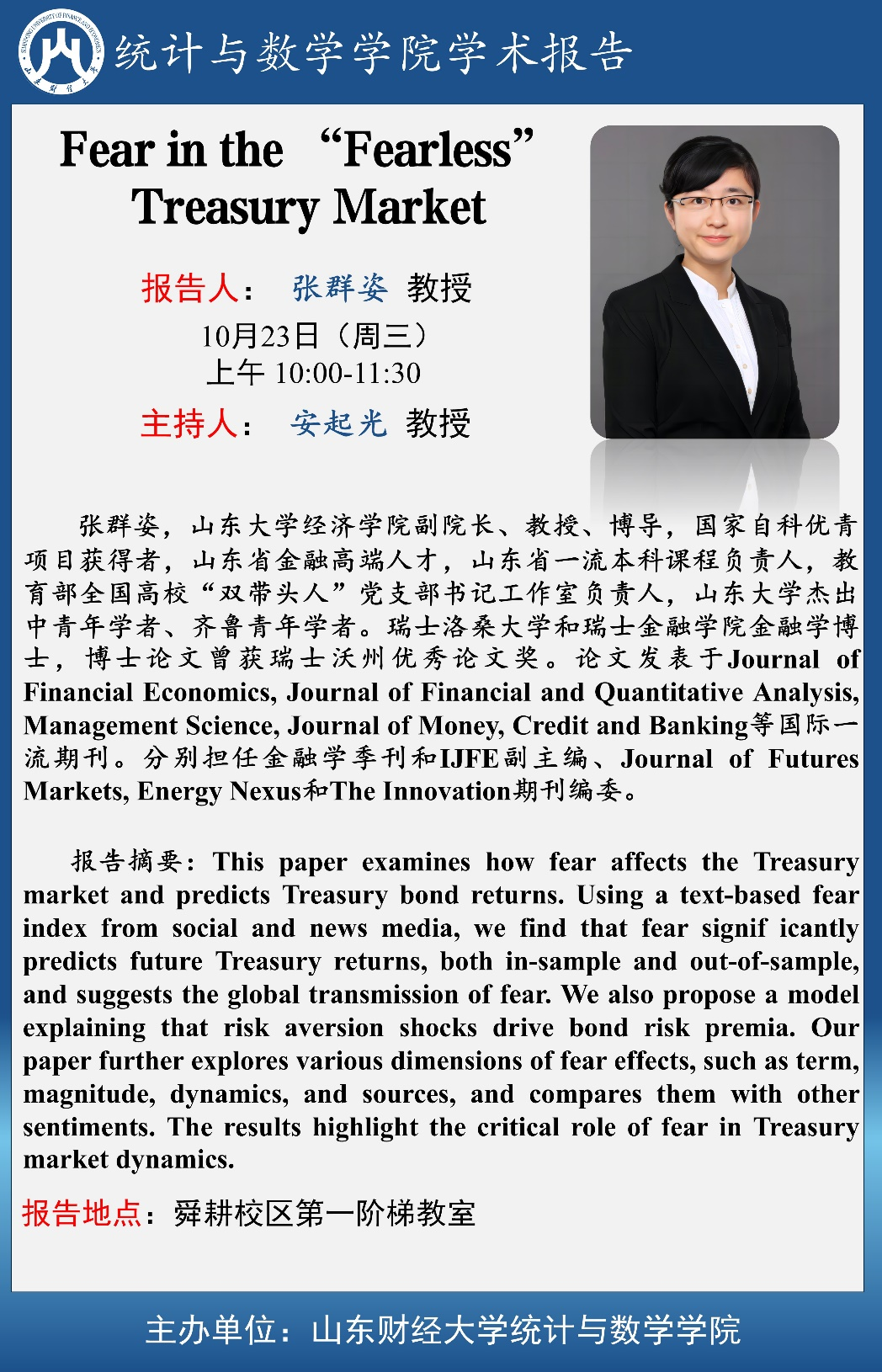 統計與數學學院學術報告預告—Fear in the“Fearless”Treasury Market