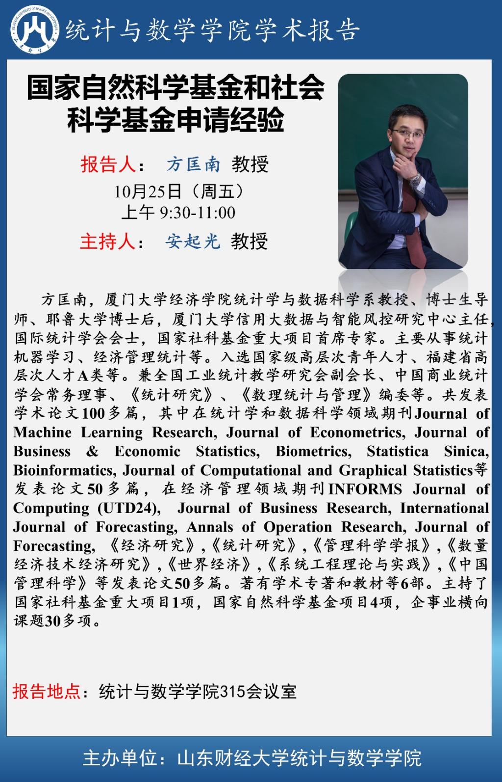 統計與數學學院學術報告預告—國家自然科學基金和社會科學基金申請經驗