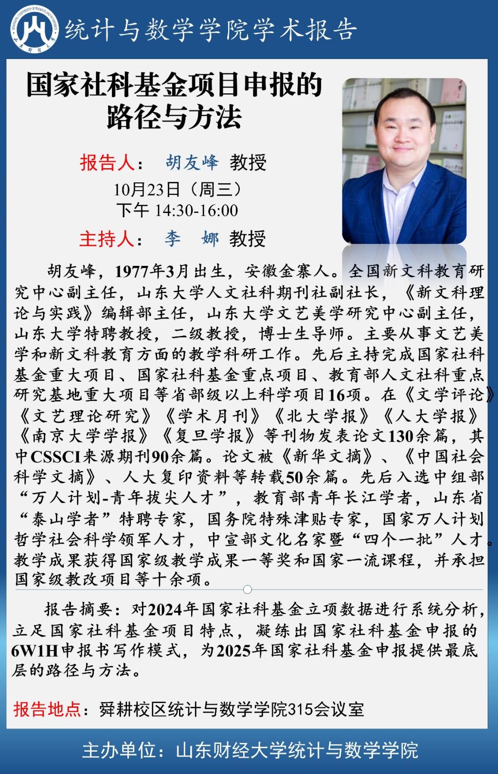 統計與數學學院學術報告—國家社科基金項目申報的路徑與方法