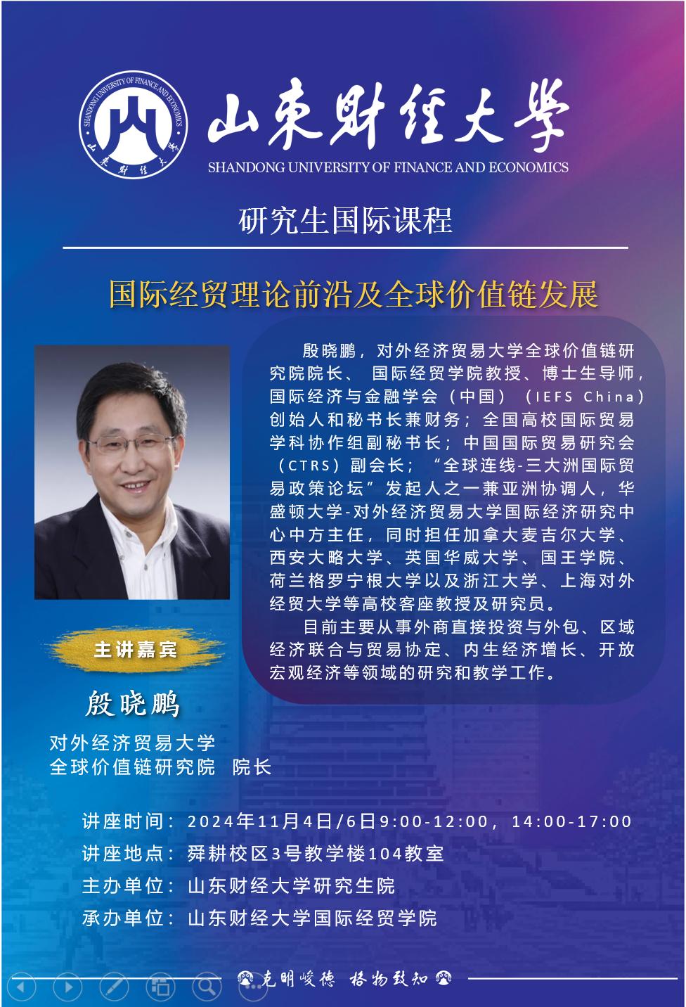 研究生國際課程:國際經貿理論前沿及全球價值鏈發展