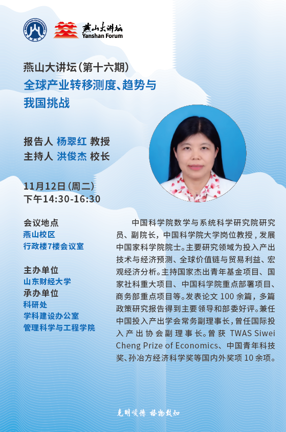 燕山大講壇(第十六期):全球產業轉移測度、趨勢與我國挑戰