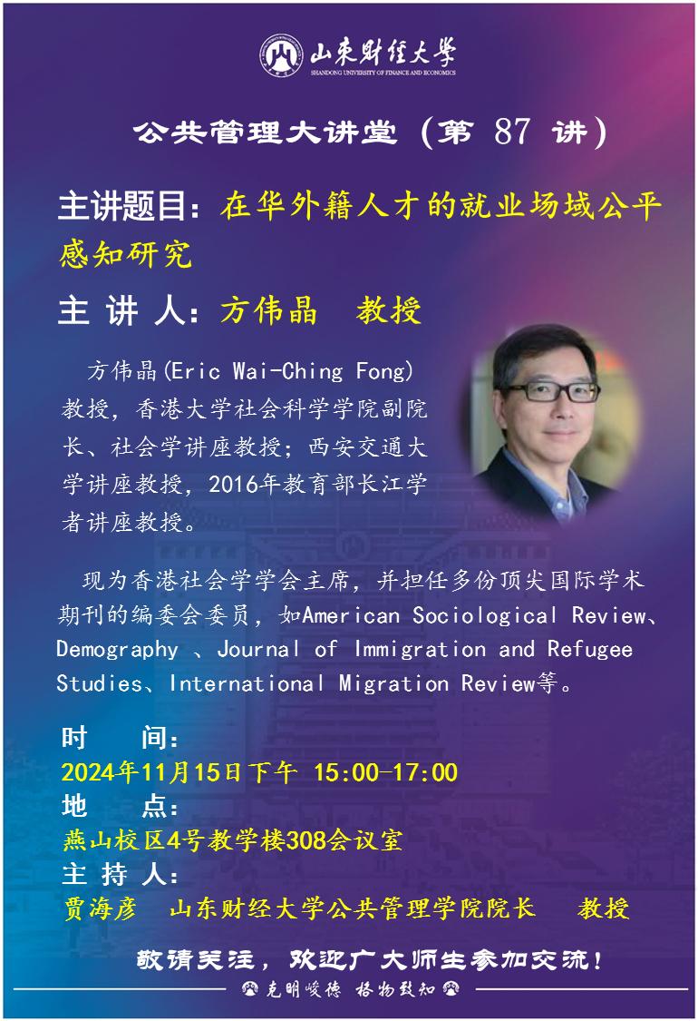 公共管理大講堂(第87講):在華外籍人才的就業(yè)場域公平感知研究