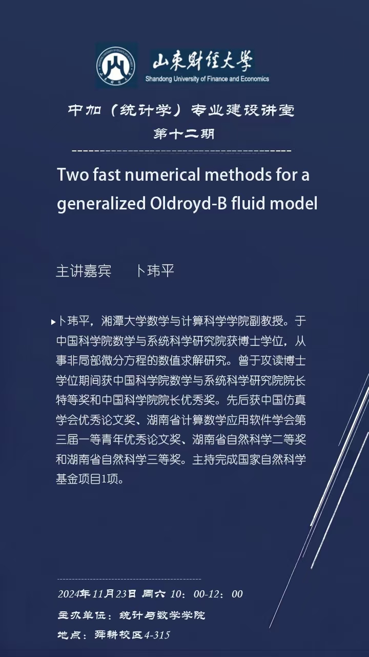 中加(統計學)專業建設講堂(第十二期)——Two fast numerical methods for a generalized Oldroyd-B fluid model