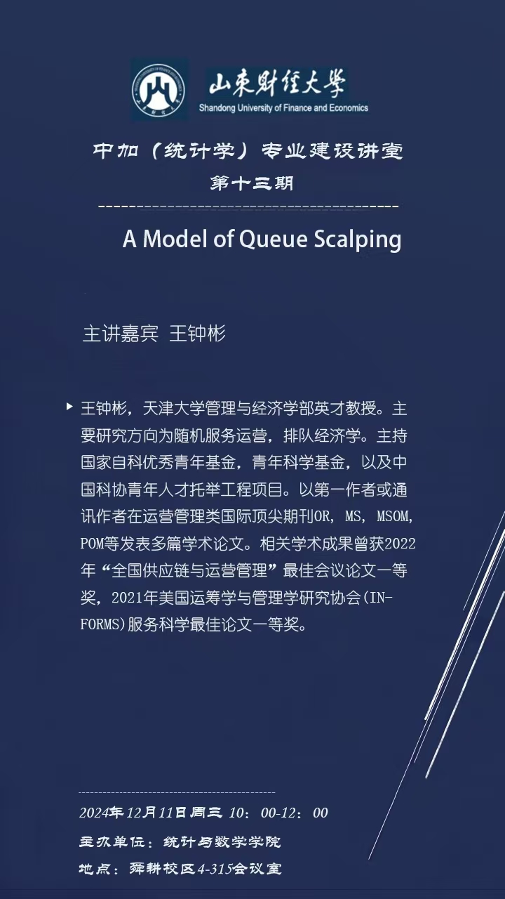 中加(統(tǒng)計(jì)學(xué))專業(yè)建設(shè)講堂第十三期——A Model Queue Scalping