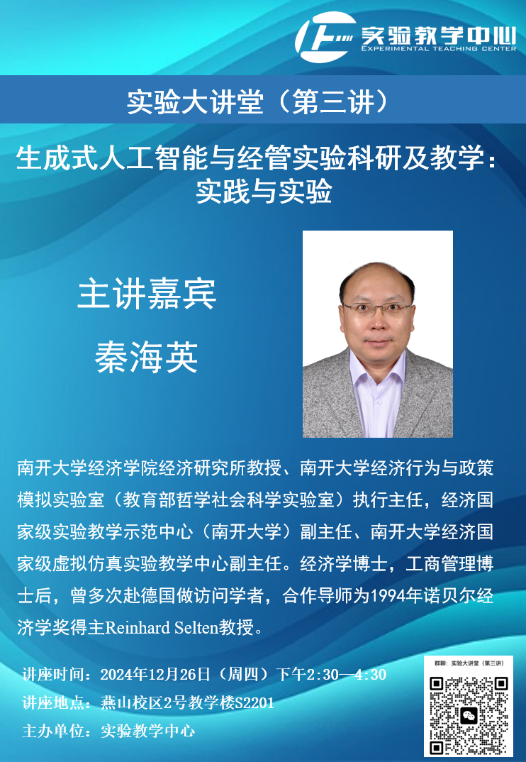 實驗大講堂(第三講)—生成式人工智能與經管實驗科研及教學:實踐與實驗