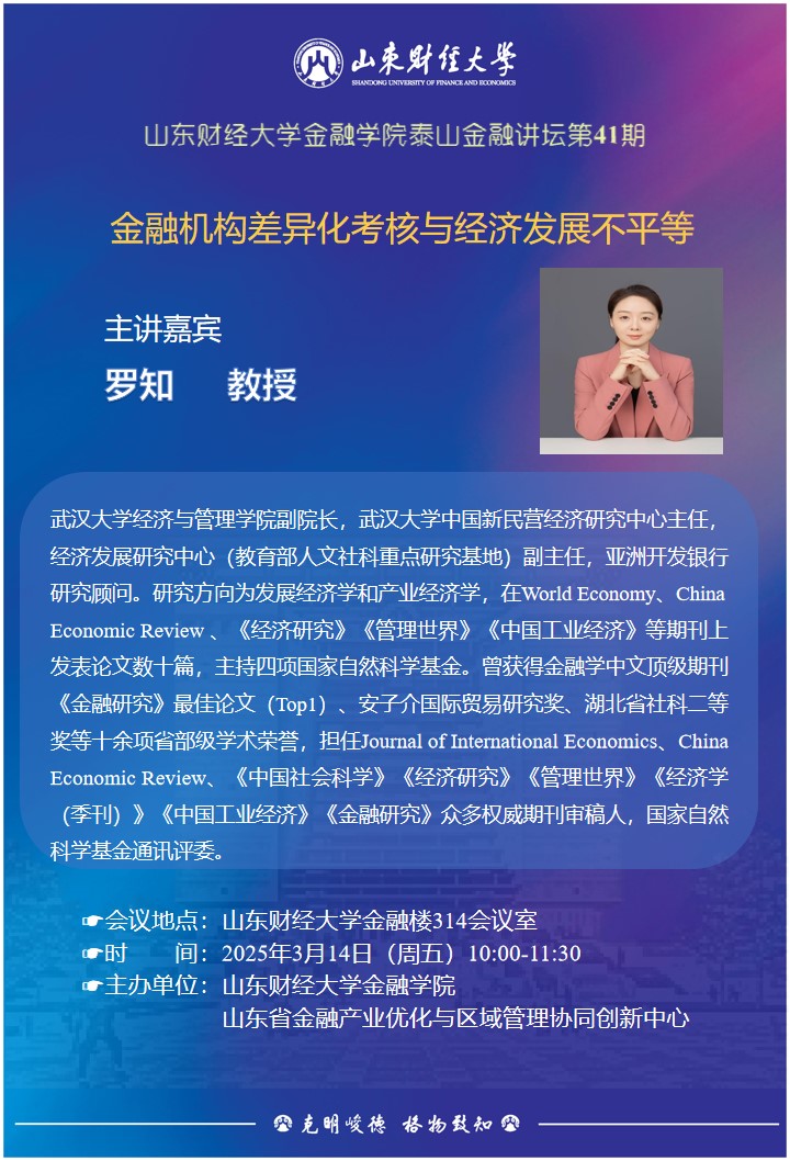泰山金融講壇(第41期)—金融機構差異化考核與經濟發展不平等
