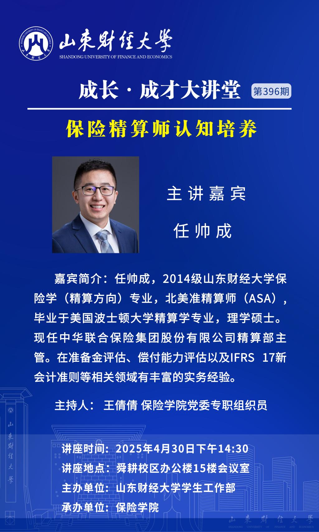 成長·成才大講堂(第396期):保險精算師認知培養
