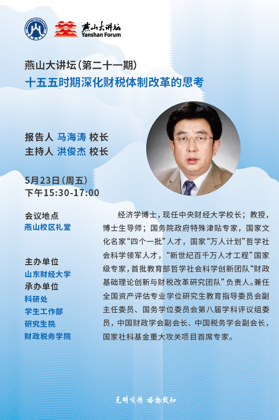 燕山大講壇(第二十一期):十五五時期深化財稅體制改革的思考