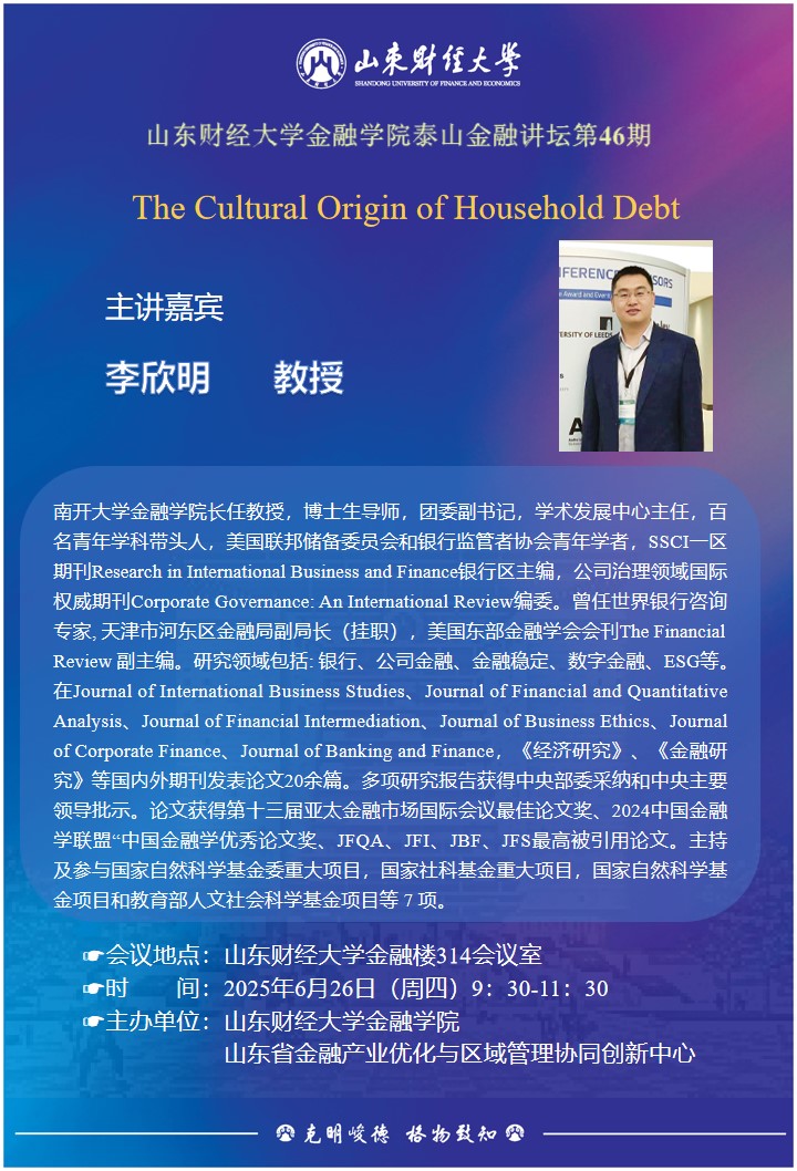 泰山金融講壇(第46期)---The Cultural Origin of Household Debt