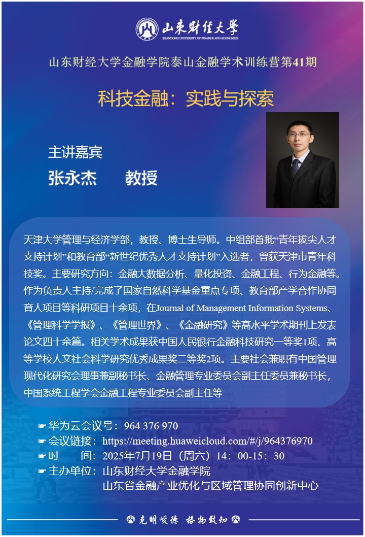 泰山金融學(xué)術(shù)訓(xùn)練營(yíng)(第41期) --- 科技金融:實(shí)踐與探索